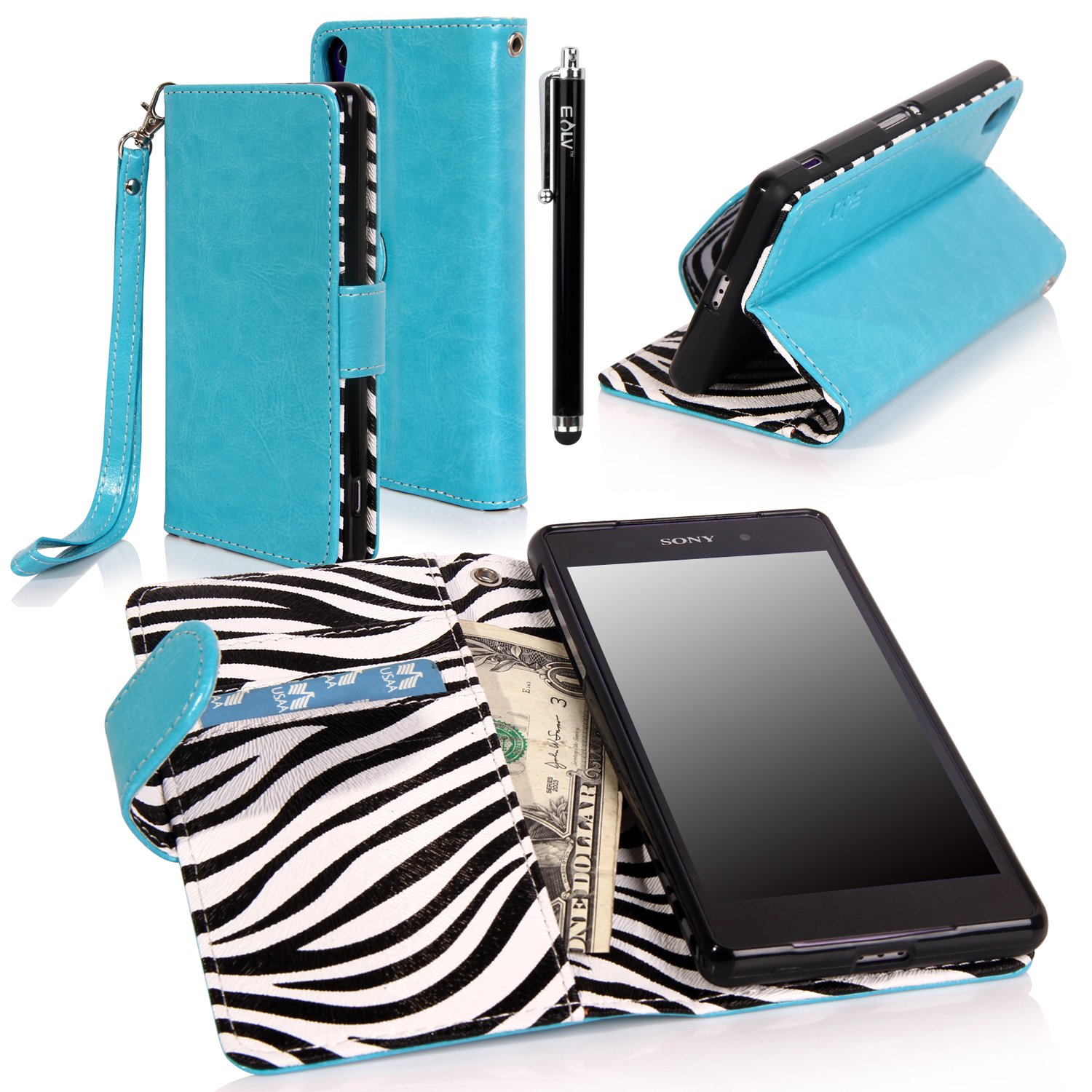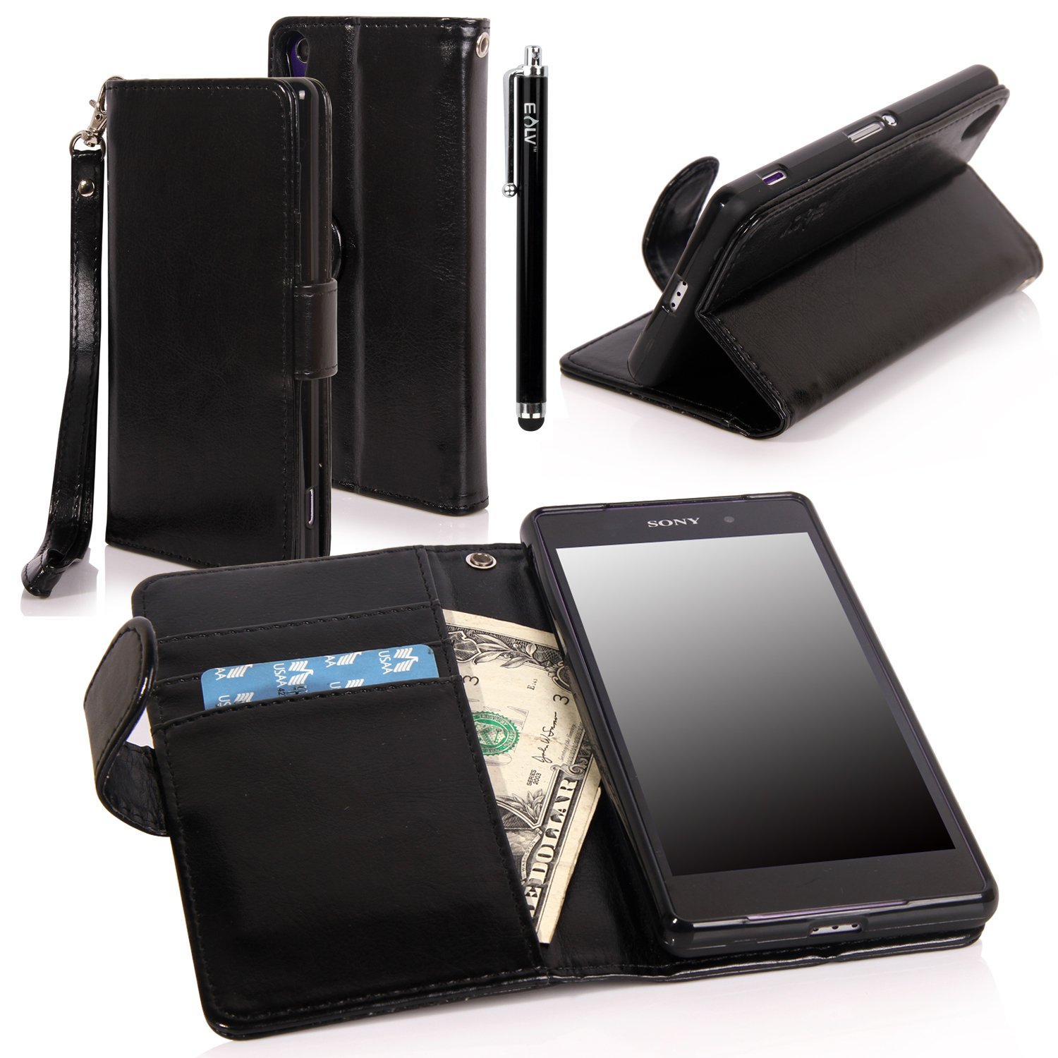 Xperia Z2 Case, Sony Xperia Z2 Case - E LV Sony Xperia Z2 flip case cover Flip Folio Wallet / Pursee full body protection Case for Xperia Z2 SMARTPHONE with 1 E LV Stylus